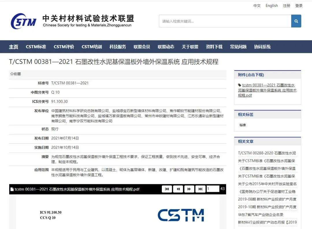 [【新聞】CSTM團體標準《石墨改性水泥基保溫板外墻外保溫系統(tǒng)應用技術(shù)規(guī)程》已正式發(fā)布!]
